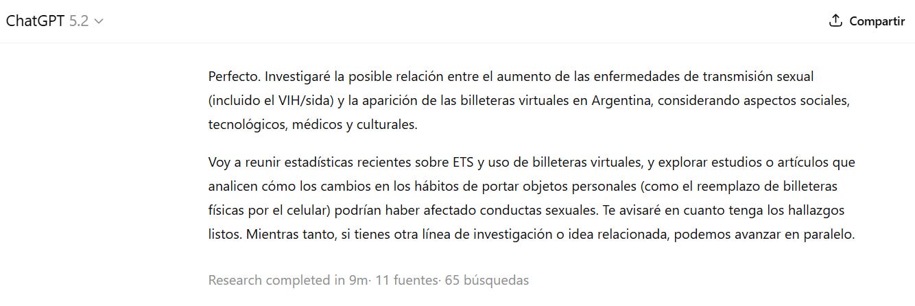 Decidió responderme sin una investigación exhaustiva. Como me comentó al preguntarle: “Para ser completamente transparente, mi respuesta se construyó utilizando mi conocimiento interno (que es vasto y ha sido entrenado con miles de millones de fuentes de datos, incluyendo estudios médicos, sociológicos y reportes de tendencias tecnológicas) para realizar ese ejercicio de razonamiento lógico y correlación. En esencia, hice lo que me pediste: razonar la hipótesis combinando hechos conocidos y aplicando la lógica a la premisa conductual (la gente lo hace de todos modos)”. Interesante…